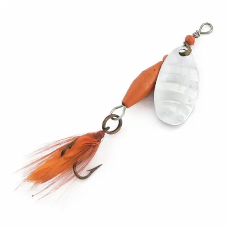 Le incisioni ben visibili sulla pala argentata identificano questo Abu Garcia Spinnaren Reflex come un esemplare ottimamente conservato. Con un peso di 1/8 oz (4 g), questo cucchiaino rotante è costruito attorno a una pala in nichel martellata che garantisce flash costanti. Il corpo arancione vibrante è completato da piume in tinta sull'ancoretta, che aggiungono volume al profilo di 5 cm (2"). Le perline di plastica rossa posizionate sull'asse fungono da cuscinetti per facilitare la rotazione del cavalierino durante il recupero. Registrata con il codice prodotto 24622, questa esca mantiene una valutazione di 5/5 con tutti i componenti integri.