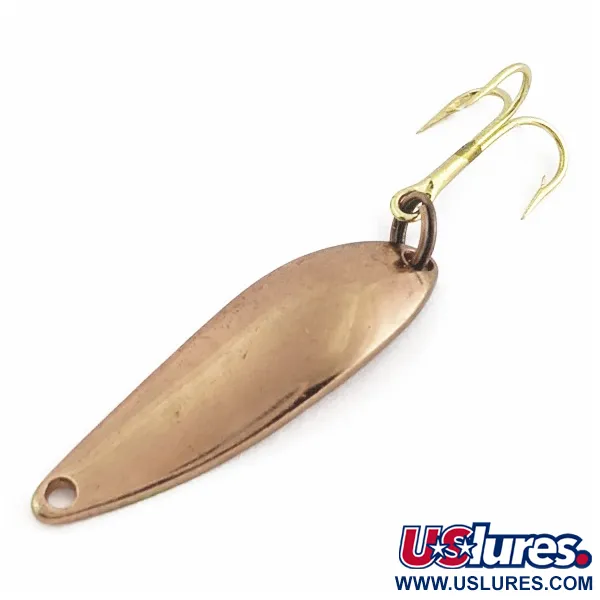Un'incisione distinta "FIORD JR" è impressa sulla superficie in rame di questo cucchiaino ondulante sottile. Con un peso di 1/8 oz (3,4 g) e una lunghezza di 1 1/2" (3,5 cm), il profilo è stretto per imitare i piccoli pesci esca affusolati. La finitura in rame offre un riflesso tenue e naturale che rende bene sia in acque limpide che velate. Progettato con una leggera curvatura vicino alla coda, il corpo in metallo è bilanciato per garantire stabilità nei lanci dalla riva o nella pesca in forti correnti fluviali. Un'ancoretta placcata in oro è montata in coda, abbinandosi alla calda tonalità metallica dell'ondulante. In condizioni 5/5, la superficie rimane lucida e priva di usura visibile o ossidazione. Questo specifico modello Acme, con codice prodotto 24550, è spesso utilizzato sia per il recupero orizzontale che per presentazioni verticali in acque profonde.