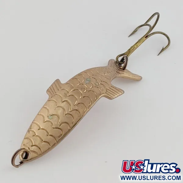 Stampato in ottone massiccio con una finitura in rame profondo, il profilo curvo di questo ondulante da 5 cm crea una silhouette tridimensionale realistica in acqua. Dettagliati motivi a scaglie sono incisi sul corpo insieme a pinne modellate vicino alla coda per imitare un pesce esca. Con un peso di 7 g, il corpo metallico è sagomato con una sottile curva a S che mantiene un movimento di nuoto laterale costante durante il recupero. Il retro dell'ondulante è chiaramente stampato con il marchio del produttore e lo stato fisico dell'esca è un solido 5/5. Progettato principalmente per il lancio, l'hardware è fissato tramite fori punzonati con precisione in testa e in coda, mantenendo l'equilibrio di questo cucchiaino vintage, identificato dal codice prodotto 24453.