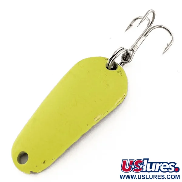 Con un peso di 1/4oz (7g), il profilo compatto di questo ondulante prodotto negli USA è costruito per una presentazione versatile in tutta la colonna d'acqua. Aeroplane Spinner ha progettato l'Aero UV, noto con il codice prodotto 11824, con un corpo da 1 1/2" (3,7 cm) rifinito in Chartreuse / Oro. Questo rivestimento fluorescente è specificamente progettato per reagire alla luce ultravioletta, fornendo una forte luminescenza verde per un'alta visibilità in condizioni di scarsa illuminazione. L'hardware consiste in un robusto anellino spaccato e un'ancoretta affilata, mantenendo gli affidabili standard costruttivi delle attrezzature americane d'epoca. Con una valutazione di 5/5, l'esca mostra solo lievi segni superficiali sulla vernice mantenendo una lucentezza di alta qualità. La forma a goccia e la solida struttura in metallo riflettono un design funzionale pensato per i pescatori che insidiano specie dove l'attrazione cromatica è un fattore primario.