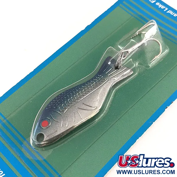 La nichelatura abbinata a un dorso blu neon definisce l'estetica di questo ondulante vintage da 7 g (1/4 oz). Branchie stampate e una trama a scaglie testurizzata avvolgono il corpo in ottone da 5 cm (2"), caratterizzato da un singolo punto rosso vicino alla punta per un tocco di contrasto. Questo esemplare, identificato dal codice 11524, è nuovo e conservato nella sua confezione originale. Realizzato in ottone marino di qualità americana, è montato con split ring in acciaio inossidabile e un amo nichelato extra affilato, progettato sia per il casting che per il trolling. Storicamente, questo design risale al 1952 ed è stato premiato dalla rivista Field and Stream come uno dei 50 migliori artificiali di tutti i tempi per la sua efficacia su specie che vanno dalla trota e il salmone al persico e il black bass. La confezione riporta che l'esca produce un'azione oscillante e bagliori durante il recupero.