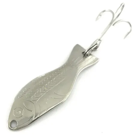 Una placcatura in nichel lucidato riveste il corpo a forma di pesce da 7 g (1/4 oz) di questo iconico ondulante, mettendo in risalto la trama a scaglie stampata e i dettagli delle branchie lungo i fianchi. Con una lunghezza di 5 cm (2"), il lato concavo mostra chiaramente i marchi del produttore Al's Gold Fish e il numero di brevetto originale, 2.542.806, che fa risalire questo design al 1952. Questo particolare esemplare, identificato dal codice 7236, è in condizioni 5/5, mantenendo una superficie riflettente brillante su tutta la silhouette. Riconosciuto da Field & Stream nel 2006 come una delle 50 migliori esche di tutti i tempi, l'ondulante presenta un armamento semplice ma efficace che include un'ancoretta montata posteriormente e un singolo foro di aggancio in testa. Lo stampaggio sul retro rimane profondo e leggibile, segno distintivo degli elevati standard di produzione originariamente stabiliti negli USA.