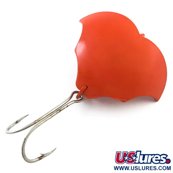 Un vivace pigmento arancione copre l'esclusivo profilo a pipistrello di questa esca Harrison Industries di produzione americana, che pesa 1/2 oz (14 g). Impresso direttamente sulla superficie superiore dell'ala stampata, il nome "Baby Bat" identifica questo specifico modello, catalogato con il codice prodotto 5223. Con una lunghezza di 1 1/2" (3,5 cm), il suo design compatto presenta una prominente pinna stabilizzatrice verticale e un'ampia apertura alare smerlata destinata alla presentazione in superficie. L'armatura consiste in un robusto amo doppio, che rimane saldamente fissato all'occhiello posteriore. Date le sue eccezionali condizioni 5/5, la finitura rimane brillante e priva di segni di usura. Questo esemplare evidenzia l'inclinazione americana della metà del secolo per i design innovativi ispirati agli animali, prodotti con un occhio di riguardo alla durata e alla lanciabilità.