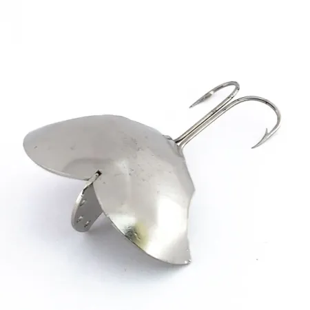 Il nichel lucidato ricopre ogni superficie di questo ondulante metallico da 14g (1/2oz), riflettendo la luce con una brillantezza che i collezionisti riconoscono immediatamente come un marchio di fabbrica della Prescott Spinner. Con una lunghezza esatta di 3,5 cm (1 1/2"), il Baby Bat, catalogato con il codice 9883, è un affascinante esempio di attrezzatura vintage prodotta negli USA. La sua silhouette distinta imita un pipistrello in volo, con ali stampate da una resistente piastra metallica che mantiene una finitura a specchio. Nella parte anteriore dell'esca, una chiglia verticale offre molteplici fori di attacco per la lenza, consentendo un controllo accurato della profondità a seconda di dove viene agganciato il moschettone. La parte posteriore è dotata di un robusto amo doppio fissato saldamente al corpo principale. Questo specifico esemplare vanta una valutazione di 5/5, presentandosi eccezionalmente pulito con punte degli ami affilate e una superficie lucente. Progettato per il lancio o il vertical jigging, il rapporto peso-dimensioni di questa esca metallica assicura il raggiungimento efficiente delle strutture più profonde.