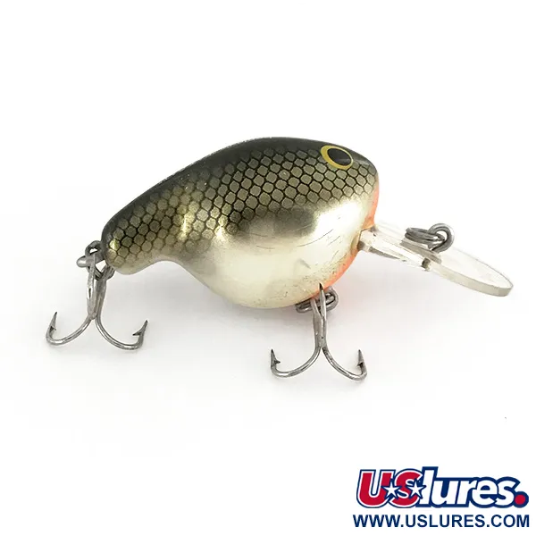 Con un peso di 9g (1/3oz), questo esemplare vintage rappresenta un'epoca classica della produzione americana di esche dei laboratori Bagley. Lo schema cromatico TS presenta una sorprendente transizione metallica dall'oro all'argento sui fianchi, sormontata da una dettagliata maglia a scaglie scure lungo il dorso. Con una lunghezza esatta di 5cm (2"), questo Bagley's Fat Cat reca il codice prodotto 7481 ed è progettato come un crankbait galleggiante con rattling per profondità comprese tra 1,5m e 2m. Questo particolare esemplare è in condizioni eccellenti, valutato 5/5, con la finitura originale trasparente sulla paletta e un vivace accento rosso-arancio sotto la gola. Gli occhi gialli con pupille nere risaltano nitidamente sulla finitura metallica e i componenti metallici rimangono lucidi. Il suo profilo a corpo largo è caratteristico della serie, studiato per creare una presenza specifica nella colonna d'acqua durante il recupero. La squamatura sulla metà superiore è nitida e sfuma dolcemente nell'argento lucido del ventre.