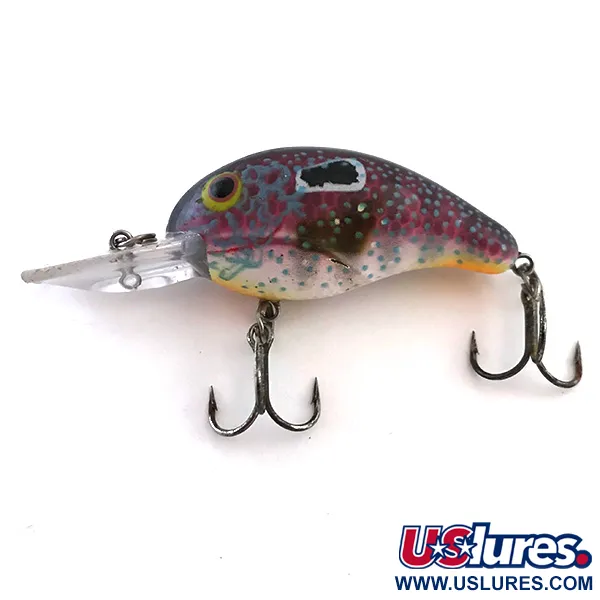 Con un peso di 8,5 g (1/3 oz), il Bandit 200 è un'esca specializzata per raggiungere profondità fino a 3 m (9,8 ft) a casting o a traina. Il corpo da 5 cm (2") è rifinito nella colorazione Sun Pearch, un mix sofisticato di dorso scuro maculato, fianchi vibranti rosa-rossi e ventre pallido. Contraddistinto dal codice 5441, questo crankbait di profondità è dotato di una camera sonora che aggiunge una dimensione acustica alla sua azione in acqua. La paletta in plastica trasparente è ben conservata e lo stato generale è 4/5, mostrando solo lievi segni di utilizzo. Due ancorette ventrali sono fissate con anellini spaccati in acciaio inossidabile, mantenendo l'assetto originale di questo crankbait prodotto negli USA.
