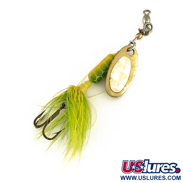 Archivio museo: Luhr Jensen Bang Tail 0 Cucchiaino, Oro/Verde, 3,5g, Piumato, #7892
