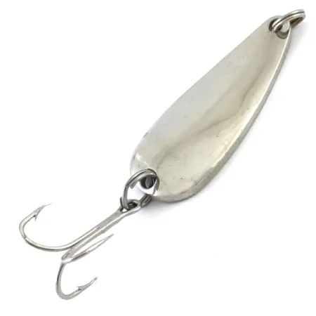 La scritta «BASS PRO» è chiaramente stampata sul lato concavo del corpo metallico, identificando questo classico ondulante da lancio proveniente dagli USA. Una finitura Nickel brillante copre l'intera lunghezza di 2 1/4" (5,5 cm), riflettendo efficacemente la luce sulla sua superficie lucida. Con il codice prodotto 4872, questo artificiale pesa 3/5 oz (17 g), fornendo la densità necessaria per lanci stabili e presentazioni in acque profonde. La componentistica consiste in anellini spaccati di alta qualità e un amo triplo affilato, tutti in condizioni eccellenti. Questo esemplare mantiene una valutazione di 5/5, mostrando un esterno pulito e ben conservato che evidenzia la qualità costruttiva vintage di Bass Pro Shops. Il metallo pesante assicura che l'ondulante mantenga il movimento durante il recupero a varie profondità.