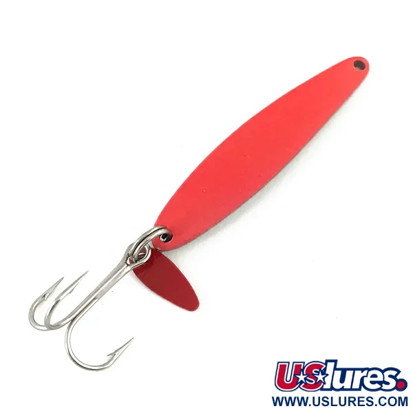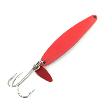 Una vivace finitura rosa ricopre questo cucchiaino da vertical jigging da 7 g (1/4 oz), garantendo un profilo ad alta visibilità ancora prima di toccare l'acqua. Contraddistinto dal codice prodotto 7325, questo Bay de Noc Swedish Pimple misura esattamente 5 cm (2 pollici) e presenta la classica geometria sottile del marchio, progettata per l'efficienza in acque profonde. Sotto la luce UV, il rivestimento fluorescente reagisce intensamente, passando da un rosa pieno a un rosso-arancio luminoso e incandescente che risalta negli ambienti scarsamente illuminati. La componentistica rimane affilata e pulita, inclusa la caratteristica paletta flicker in plastica rossa che funge da punto di bersaglio visivo proprio sull'amo triplo. Questo esemplare è in condizioni eccellenti, con un punteggio di 5/5. Prodotti negli Stati Uniti, questi artificiali sono la testimonianza dei decenni di esperienza di Bay de Noc nel jigging verticale, dove il peso e il bilanciamento del corpo metallico sono fondamentali per raggiungere la profondità desiderata. L'anellino spaccato e l'ancoretta sono montati saldamente, mantenendo l'integrità strutturale necessaria per insidiare le specie attraverso il ghiaccio o in correnti aperte.