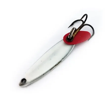 Piccolo ma denso per le sue dimensioni, questo cucchiaino da vertical jigging da 1/16 oz (2 g) rappresenta l'artigianalità di Bay de Noc, produttore statunitense con decenni di storia. Lungo esattamente 2,5 cm (1"), questo esemplare presenta una finitura bianca liscia che fornisce una firma visiva distinta nella colonna d'acqua. L'esca, identificata dal codice prodotto 9833, è in condizioni superbe con una valutazione di 5/5, mostrando superfici ben conservate e componenti originali robusti. Una caratteristica distintiva è la paletta vibrante in plastica rossa traslucida fissata all'anello spaccato di coda, che funge da punto di attacco ad alta visibilità vicino all'ancoretta. Durante il recupero, la paletta crea uno sfarfallio tecnico, un design concepito per attirare l'attenzione di specie come lucioperca o pesce persico. L'occhiello di testa è forato in modo pulito per un fissaggio sicuro e l'intera struttura riflette i principi del design scandinavo che hanno reso il Swedish Pimple uno strumento fondamentale per la pesca a trote e persici.