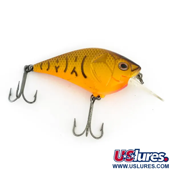 Un'accattivante finitura Tiger giallo-oro definisce questo crankbait da 14g (1/2oz), caratterizzato da un dettagliato motivo di scaglie a nido d'ape lungo il dorso. Berkley ha sviluppato lo Squarebull, qui con il codice prodotto 8377, con una lunghezza di 7cm (2 3/4") per applicazioni di lancio specializzate. Il design tecnico incorpora una paletta quadrata trasparente che facilita profondità di immersione da 0,9 m (3ft) a 2,1 m (7ft). I dettagli visivi sono rilevanti, tra cui un dorso marrone scuro che sfuma in un ventre arancione brillante con un accento rosso sulla gola. Internamente, questo modello galleggiante e munito di rattle è costruito per la produzione sonora e il galleggiamento. L'hardware originale, inclusi entrambi gli ancorette, appare in stato inutilizzato, coerente con la sua valutazione di condizione 5/5. Grandi occhi realistici sono incastonati in placche branchiali modellate, evidenziando la maestria di questa esca prodotta negli USA.