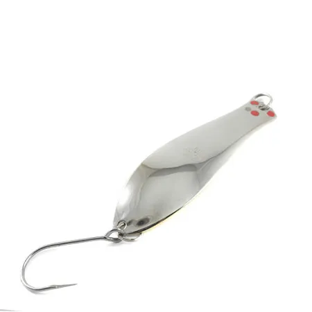 Con un peso di 30g (1oz), questo ondulante Big Doctor 285 è un esempio eccellente dell'attrezzatura heavy-duty prodotta da Prescott Spinner negli USA. Il corpo da 11cm (4 1/4") presenta un design a doppia finitura, con il lato anteriore in nichel a specchio e il retro in tonalità oro caldo. Quattro piccoli punti rossi sono applicati vicino alla testa dell'esca, fornendo un tocco di colore sul metallo lucido. Catalogata con il codice 1177, l'esca è in condizioni 5/5, con la placcatura e l'amo singolo di coda che non mostrano segni di usura. La struttura si affida a robusti anelli spaccati per collegare la minuteria al corpo in metallo stampato, un segno distintivo delle esche destinate sia allo spinning che alla traina.