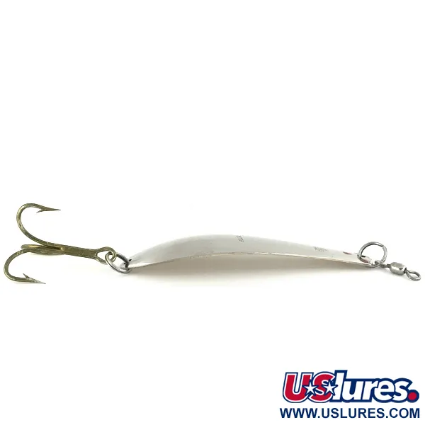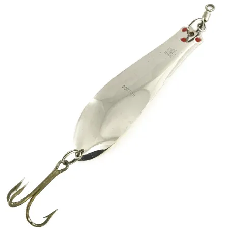 Con un peso notevole di 30g (1oz), questo ondulante segnala immediatamente la sua attitudine a insidiare i predatori di profondità. Con una lunghezza di 11cm (4 1/4"), il profilo vanta un'estetica bicolore con una faccia in argento lucidato e un retro dorato. Piccoli accenti rossi vicino all'occhiello superiore forniscono un lampo di colore localizzato sul corpo metallico lucido. Sul lato argento è stampato chiaramente l'identificativo "DOCTOR", che identifica questo modello con il codice prodotto 7110. Questo ondulante prodotto negli USA è armato con un'ancoretta ad alta resistenza e una girella fluida collegata tramite anellini spaccati rinforzati. L'esemplare si presenta in condizioni 5/5, con le superfici oro e argento che mantengono l'originale finitura a specchio. Lo spessore elevato del metallo è studiato per lanci pesanti o sessioni di traina a grandi pesci d'acqua dolce.