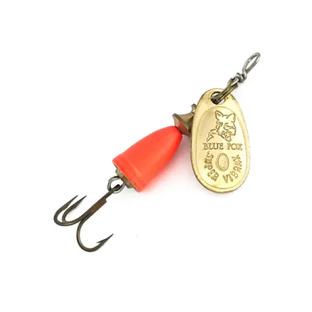 Archivio museo: Blue Fox Super Vibrax 0 Cucchiaino, Oro / Arancio Fluoro, 3,4g, #7982