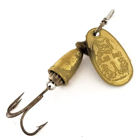 Punzonata con l'inconfondibile logo della testa di volpe, la pala ovale di questo cucchiaino da 4 g (1/8 oz) identifica immediatamente le sue origini finlandesi. Questo Super Vibrax misura 1, identificato dal codice prodotto 12061, presenta una classica finitura in ottone invecchiata naturalmente. Con una lunghezza di 5 cm (2"), il corpo a campana dell'esca mostra un assottigliamento della finitura sulla superficie esterna, rivelando il metallo sottostante. Il meccanismo a ingranaggi interno, progettato per battere contro la campana durante il recupero, è chiaramente visibile alla base del corpo. Questo esemplare mostra uno stato di conservazione 4/5, con l'ancoretta che presenta un leggero scurimento superficiale pur mantenendo la sua integrità strutturale. L'asse in metallo rimane dritto con un occhiello ben avvolto e la pala in ottone mostra piccoli graffi superficiali dovuti all'uso in pesca.