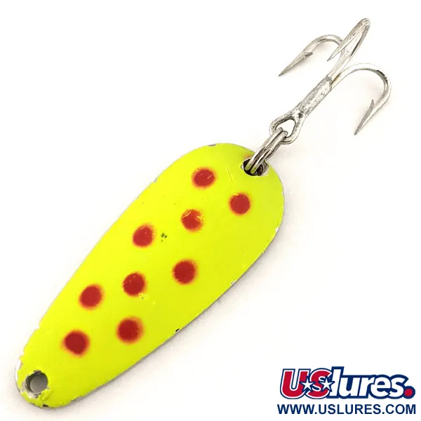 Rivestito con una vivace vernice chartreuse e distintivi puntini rossi, questo ondulante di fabbricazione americana è costruito per un'alta visibilità in varie condizioni di trasparenza dell'acqua. In condizioni pari al nuovo (voto 6), la finitura rimane nitida e riflettente su tutto il profilo di 5 cm (2"). Mentre il chartreuse fluorescente risalta alla luce del giorno, la specifica utilità di questo Blue Fox Tor-P-Do UV deriva dal suo rivestimento reattivo che brilla intensamente sotto la luce UV, facendo apparire i punti rossi come punti di attacco scuri e ad alto contrasto. Un robusto amo triplo è fissato tramite un solido anello spaccato alla parte inferiore nichelata lucida, contribuendo a un peso totale di 14 g (1/2 oz) per un lancio efficace o un jigging verticale. Con il codice prodotto 12796, questa esca sfrutta la sua forma a goccia e il corpo zavorrato per mantenere la stabilità quando viene trainata in profondità.