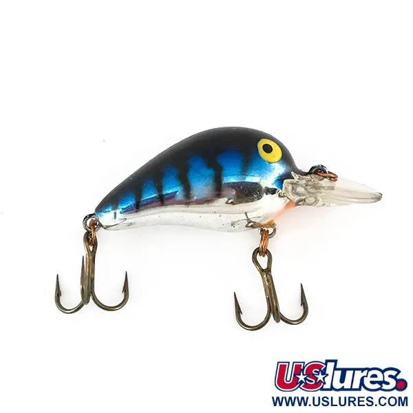 Scintillante in una ricca finitura Blu Metallizzato, questo crankbait ultraleggero presenta la classica silhouette dal corpo alto che definisce l'eredità BOMBER da decenni. Questo specifico esemplare, identificato dal codice prodotto 7826, misura un formato compatto di 1 1/4" (3 cm) e pesa solo 1/16 oz (2 g), rendendolo uno strumento specializzato per insidiare persici e cavedani. Il design include una paletta trasparente configurata per raggiungere profondità di 1,2–1,8 m (4–6 ft) durante il recupero a casting. Visivamente, l'esca presenta marcate barre verticali scure su una sfumatura blu che sfuma verso un ventre argentato riflettente, completato da grandi occhi gialli ad alto contrasto. Come modello galleggiante, è progettato per applicazioni in acque poco profonde dove la precisione è fondamentale. Le condizioni del corpo e delle componenti sono eccezionali, apparendo molto ben conservate, meritando una valutazione di 5/5. Le sue radici americane sono evidenti nel robusto occhiello e nelle ancorette originali con finitura bronzata.