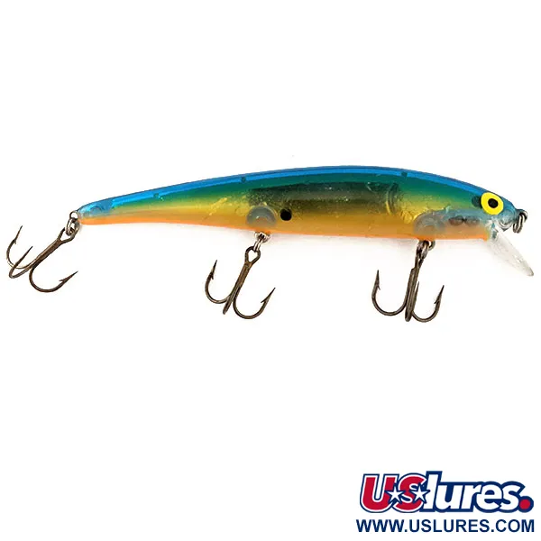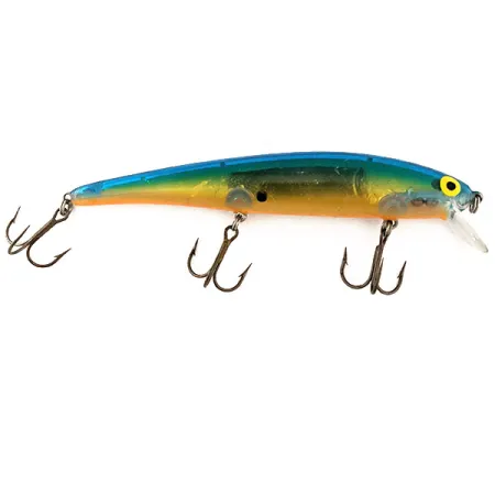 Fianchi oro e arancio che sfumano in un dorso blu profondo definiscono la classica livrea XBBO di questo minnow di produzione americana. Con una lunghezza di 12 cm (4 3/4") e un peso di 12 g (2/5 oz), questo Bomber Long A esibisce il profilo snello diventato un punto fermo per i pescatori di luccioperca e lucci. Questo specifico modello 11375 è un suspender, progettato per restare sospeso nella colonna d'acqua a profondità di lancio di 0,6 - 0,9 m (2-3 ft) o profondità di traina tra 1,2 - 2,4 m (4-8 ft). All'interno del corpo traslucido sono visibili le camere dei rattle interni, che forniscono un profilo acustico specifico durante il recupero. Tre affilate ancorette sono montate tramite robusti anellini spaccati, riflettendo la solidità tipica dell'era manifatturiera statunitense di Bomber. Gli occhi gialli con grandi pupille nere offrono un punto focale ad alto contrasto contro i fianchi dorati cangianti. Questo esemplare è in condizioni 5/5, mantenendo la finitura originale di fabbrica e i componenti in plastica trasparente.