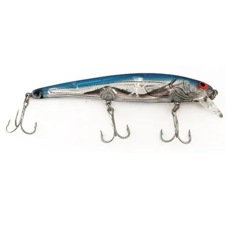 Con una lunghezza di 12 cm dalla punta alla coda, la silhouette slanciata di questo Bomber Long A rimane un punto fermo per chi insidia grossi lucci e lucioperca. La livrea XBBO combina un dorso blu traslucido con una trama interna a scaglie d'argento riflettenti e vivaci occhi rossi che offrono un punto di attacco preciso. Questo specifico artificiale, con codice prodotto 11376, pesa 12 g e incorpora un rattle interno per una maggiore presenza in acqua. Come suspender, consente una gestione controllata della profondità, scendendo a 0,6-0,9 m con un lancio standard o raggiungendo 1,2-2,4 m a traina. Le condizioni 5/5 di questo esemplare di produzione americana sono eccellenti, con le tre ancorette e la paletta trasparente che rispecchiano gli standard originali di fabbrica.