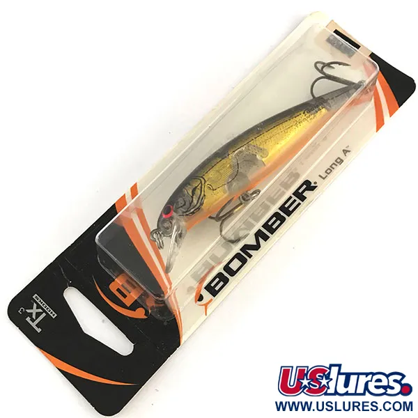 La lamina interna dorata crea un effetto scintillante attraverso il corpo in plastica trasparente di questo Bomber Long A B14A. Con un peso di 9,5 g e una lunghezza di 9 cm, questo artificiale è progettato sia per il lancio che per la traina. Durante il lancio, l'esca raggiunge profondità di 0,6-0,9 m, mentre la traina la porta a un range di 1,2-2,4 m. Il codice del produttore è 8791 ed è in condizioni pari al nuovo. Dotato di ami TX3, presenta un dorso scuro che crea contrasto con l'interno dorato metallizzato. Assemblato in Messico, è una scelta comune per chi insidia lucioperca o varie specie di black bass come il boccalone.