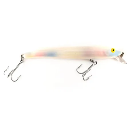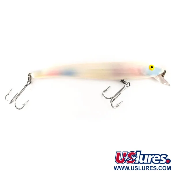 Con un peso di 42 g (1 1/2 oz), questo Bomber Magnum Long A B17A di grandi dimensioni è uno dei preferiti per la pesca in acque profonde e per la cattura di esemplari da trofeo. La finitura Pearl su questo corpo da 17,8 cm (7") mostra delicate sfumature di blu e rosa, completate dagli iconici occhi gialli che molti collezionisti riconoscono immediatamente. Prodotto negli USA con il codice prodotto 11273, il minnow è progettato per raggiungere profondità di 0,6-0,9 m (2-3 ft) a lancio, o tra 1,2-2,4 m (4-8 ft) a traina. L'hardware rimane in ottime condizioni, con ancorette originali di grado marino e robusti anelli spaccati. Questo particolare esemplare è in condizioni eccezionali, classificato 5/5 per la sua finitura pulita e la mancanza di usura visibile. Le principali specie target per questa esca dal profilo largo includono la spigola striata, il walleye e il persico trota.