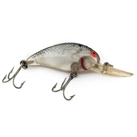 Il corpo dai pannelli traslucidi, abbinato a una fine trama a scaglie argentate sul dorso, distingue questo crankbait da 1/3 oz (9 g) dalle varianti più opache. Con una lunghezza di 2 1/4" (5,5 cm), il Bomber Model 6A è un'esca versatile, utilizzata frequentemente dai pescatori a lancio o a traina per la cattura di lucioperca e lucci. Questo specifico esemplare, identificato dal codice prodotto 13547, presenta i caratteristici occhi rossi e le marcature branchiali che creano un punto focale netto sulla finitura fumé. La paletta trasparente è progettata per lavorare a profondità comprese tra 1,8 e 2,4 m (6-8 ft). Realizzato negli USA, utilizza il sistema screw-tail per l'aggancio degli ami, dove la viteria è filettata direttamente nel corpo per una maggiore durata. Questo pezzo si presenta in condizioni 4/5, mostrando solo lievi segni superficiali coerenti con la sua età.