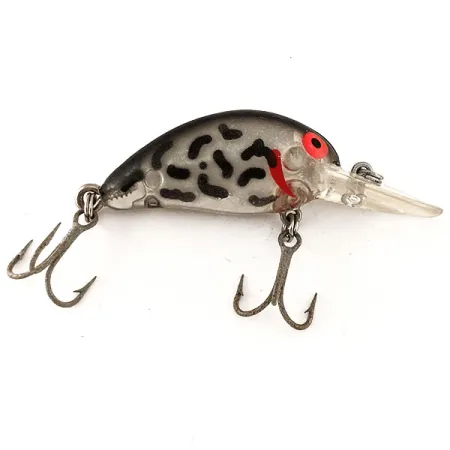 Con un peso esatto di 1/4oz (7g), questo crankbait compatto incarna la maestria artigianale che ha reso Bomber un nome di riferimento nella produzione di esche americana. Questo esemplare da 1 3/4" (4,5 cm), identificato dal codice 12519, presenta un corpo traslucido color argento fumo decorato con vistose macchie leopardate nere e sottili striature branchiali rosse. Progettato come esca galleggiante, utilizza una paletta arrotondata trasparente per raggiungere profondità comprese tra 0,9 e 2,1 m (3-7 piedi), una gamma classica per insidiare lucioperca o lucci attivi. Il profilo visivo è accentuato dai caratteristici occhi rossi con pupille nere, un tratto distintivo ricercato dai collezionisti nei primi modelli Bomber in plastica. La componentistica è in condizioni 5/5, dotata di due ancorette affilate e un robusto anello spaccato per il fissaggio della lenza. Originaria degli USA, la serie Model B ha contribuito a definire la categoria dei moderni crankbait da profondità medio-basse grazie al suo resistente corpo stampato.