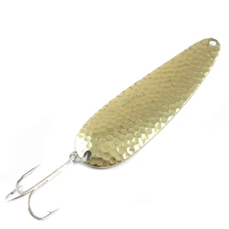Una distinta trama martellata definisce il lato frontale di questo ondulante Chippewa, una scelta classica per i pescatori che cercano quel particolare effetto di rifrazione della luce in acqua. Chiaramente stampato sul retro con "MADE IN U.S.A.", questo esemplare da 9 cm (3 1/2") rappresenta l'affidabile artigianato per cui Worth era nota tra la metà e la fine del XX secolo. Con un peso di 19 g (2/3 oz), l'esca presenta una finitura in oro martellato che rimane vibrante lungo tutto il corpo a forma di goccia. La componentistica consiste in un anellino spaccato argentato e un'ancoretta affilata, rendendolo un'opzione robusta per il lancio o la traina. Identificato dal codice prodotto 1744, questo pezzo mantiene una solida condizione 4/5, mostrando superfici ben conservate e metallo pulito. Il suo design è stato un elemento fondamentale nelle cassette da pesca negli Stati Uniti, apprezzato per essere un'attrezzatura accessibile ed efficace. La parte superiore dell'ondulante presenta un foro per il fissaggio della lenza, mentre il passaggio verso l'ancoretta è fluido e sicuro.