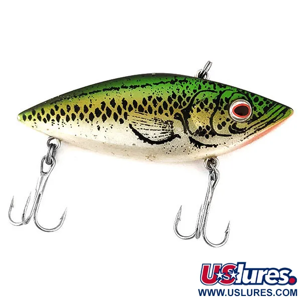 Una classica colorazione Baby Bass definisce la finitura di questo esemplare vintage, caratterizzato da un dorso verde scuro che sfuma in scaglie argento-oro con evidenti macchie nere. Con un peso di 1/2 oz (14 g), la natura affondante di questa esca la rende una scelta versatile sia per il lancio che per la traina in varie fasce d'acqua. Il profilo da 7,5 cm è impreziosito da un vivace occhio rosso e dettagli sui copri-branchie, riflettendo gli standard produttivi della sua origine statunitense. Cotton Cordell ha prodotto il Bait Bonanza, identificato dal codice 12866, come un'esca di tipo rattlin rumorosa destinata a una vasta gamma di specie tra cui luccio, lucioperca e persico. Sia le ancorette originali che l'occhiello superiore sono ben conservati, mantenendo un elevato rating di condizione 5/5. Il design a testa piatta è caratteristico di questo modello, costruito per resistere alle sollecitazioni della pesca in acqua dolce.