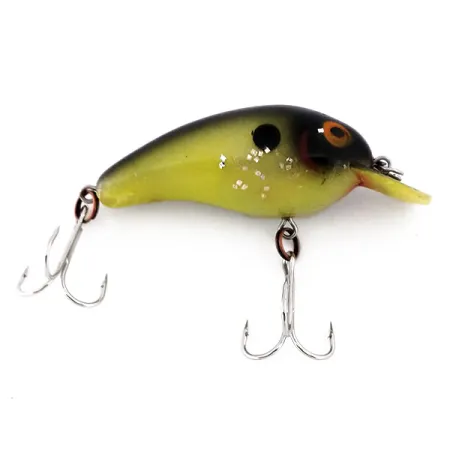 Scaglie argentate scintillanti accentuano i fianchi giallo-verdi di questo crankbait da 7g (1/4oz), creando un'estetica classica familiare a ogni collezionista dell'eredità di Fred Young. Identificato dal codice prodotto 10268, questo modello da 5 cm (2") rappresenta un design leggendario che ha segnato il passaggio dell'industria dal legno intagliato alla plastica stampata. La livrea presenta un dorso nero ad alto contrasto su un corpo chartreuse, completato da un evidente punto d'attacco nero e un occhio cerchiato d'arancio. Nelle sue attuali condizioni 5/5, la finitura è eccezionalmente pulita, preservando la brillantezza originale e l'integrità della paletta integrata. Progettato come esca galleggiante con rattling, è studiato per raggiungere profondità comprese tra 0,6 e 1,2 m (2 - 4 piedi) durante il lancio o la traina. L'hardware è composto da due ancorette fissate tramite anelli spaccati, con un robusto occhiello metallico posizionato sul muso.