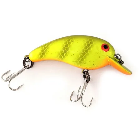 Una vivace verniciatura gialla con un classico motivo a nido d'ape definisce la finitura di questo crankbait compatto da 4 cm (1 1/2"). Con un peso di 4 g (1/8 oz), questo Cotton Cordell Big O è un esempio eccellente del codice prodotto 11219, caratterizzato dalla tipica paletta quadrata progettata per lavorare a profondità fino a 0,9 m (3 piedi). Il corpo giallo vibrante è completato da una sottile pancia arancione e da suggestivi occhi rossi e neri, una combinazione di colori spesso preferita per insidiare pesce persico, aspio e luccio in varie condizioni d'acqua. Questo esemplare prodotto negli USA è in condizioni eccezionali, con una valutazione di 5/5 per la superficie pulita e i componenti intatti. Due affilati ami tripli sono assicurati da robusti anelli spaccati, pronti per essere lanciati in strutture poco profonde. Il profilo del corpo corto e tozzo del Big O ha contribuito a definire la moderna categoria dei crankbait shallow-runner.