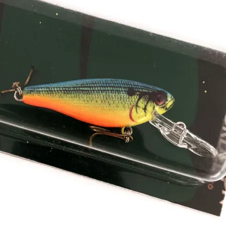 Una vivace pancia rosso-arancio garantisce un'elevata visibilità dal basso su questo Cotton Cordell C.C. Shad da 4 g (1/8 oz). Con una lunghezza di 4,5 cm (1 3/4"), questa esca è identificata dal codice prodotto 12920 ed è progettata come un artificiale galleggiante con rattling, specifico per insidiare specie come persico reale e luccioperca. La colorazione presenta un dorso blu profondo che sfuma in fianchi squamati giallo-verdi, caratterizzati da una macchia scura dietro l'opercolo. Questo esemplare è nuovo, con una paletta trasparente e componentistica originale con finitura bronzata. A seconda della tecnica di pesca, raggiunge profondità di 1,8 m (6 ft) a lancio e fino a 4 m (13 ft) a traina. La costruzione sottile a fianchi piatti richiama la tradizione produttiva di Cotton Cordell a Hot Springs, Arkansas, con una confezione che riflette gli standard del 2012.
