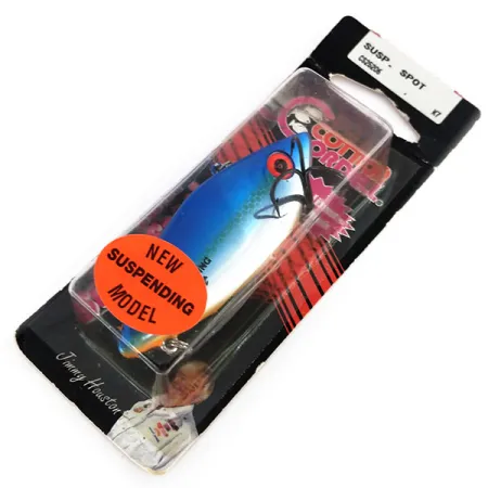 Rifinito con una vivace tonalità di blu lungo il dorso, questo lipless crankbait da 7,5 cm (3") è un classico esempio di attrezzatura prodotta in Arkansas. Con un peso di 12 g (2/5 oz), il Suspending Spot è progettato specificamente per restare sospeso nella colonna d'acqua quando il recupero viene interrotto, a differenza dell'originale Super Spot ad affondamento rapido. Questo esemplare è inutilizzato, conservato nella sua confezione originale del 1997 che riporta il bollino circolare arancione "New Suspending Model". La costruzione interna dell'esca presenta una camera sonora calibrata per emettere vibrazioni e rumore di rattling durante il lancio o la traina. È equipaggiato con affilate ancorette rotanti Excalibur, un dettaglio di alta gamma per le esche di quell'epoca. Prodotto a Fort Smith, AR, USA, questo pezzo porta il codice prodotto 9917 e rimane un punto di riferimento per la pesca di lucci, persici, salmoni e trote.