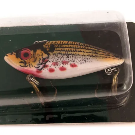 Vivaci occhi rossi abbinati a distintive macchie "sanguinanti" cremisi lungo il fianco definiscono il carattere visivo di questo lipless crankbait da 7 g (1/4 oz). Lungo esattamente 5 cm (2"), questo esemplare rappresenta l'eredità di Cotton Cordell nella produzione di esche rumorose progettate per profondità variabili. La finitura presenta una trama a scaglie dorate sulla metà superiore, che sfuma dolcemente in un ventre bianco. Identificato dal codice prodotto 12921, questo rattler affondante è costruito per tecniche di casting e traina verso specie come persici, lucci o trote. Come articolo non utilizzato nella sua confezione blister originale, l'esca mantiene il suo aspetto di fabbrica con una valutazione di 6. Le ancorette dorate rimangono lucide e assicurate, mentre il retro della scheda descrive la storia del produttore iniziata a Hot Springs, Arkansas.