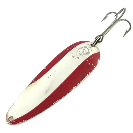 Lungo 9 cm, questo cucchiaino ondulante sfoggia le caratteristiche strisce diagonali rosse e bianche che definiscono l'eredità di Eppinger da oltre un secolo. Il retro concavo è marchiato con "DARDEVLE DETROIT, U.S.A.", un dettaglio che rimanda alla sua storia prima che il produttore trasferisse le attività a Dearborn nel 1959. Con un peso di 28 g, il metallo di grosso spessore è costruito per lanci a lunga gittata e per mantenere la profondità durante un recupero costante. Il lato frontale mostra leggere perdite di colore e graffi da utilizzo, ottenendo una solida valutazione dello stato di 4/5 che riflette la sua storia in una cassetta da pesca attiva. La struttura presenta una robusta ancoretta fissata tramite anellino spaccato, abbinata a un classico retro nichelato per garantire bagliori in diverse condizioni d'acqua. Questo esemplare, identificato dal codice prodotto 9366, rimane un esempio lampante dell'attrezzatura di produzione americana che Lou Eppinger realizzò per la prima volta nel suo seminterrato a Detroit.