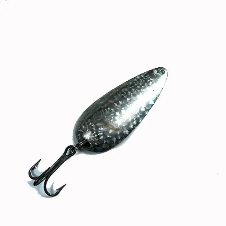 Decorato con una finitura martellata «Crystal» a scaglie d'argento, questo classico ondulante riflette la luce attraverso la sua superficie alveolata per attirare l'attenzione dei predatori di profondità. Questo ondulante da lancio da 21 g (3/4 oz) misura 7 cm (2 3/4 pollici) e presenta l'iconico profilo oblungo e concavo che Eppinger ha perfezionato nel Michigan sin dalla fondazione dell'azienda nel 1906. Identificato dal codice prodotto 0334, questo esemplare di Dardevle Dardevlet rappresenta l'affidabile maestria artigianale che Lou Eppinger ha introdotto nel suo seminterrato di Detroit. Osservando da vicino la componentistica, la finitura testurizzata e l'ancoretta scura rimangono in ottime condizioni 4/5. Il corpo in metallo spesso è destinato a un recupero lento e costante, a testimonianza di un design così efficace da essere stato incluso nei kit di sopravvivenza dell'aviazione militare statunitense. L'amo è saldamente montato alla base del corpo a forma di goccia tramite un robusto anello spaccato.