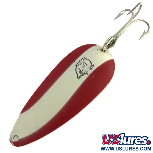 Con un peso di 21 g (3/4 oz), questa Eppinger Dardevlet è un ondulante da lancio solido e consistente al tatto. La faccia anteriore presenta le iconiche strisce diagonali rosse e bianche, con il caratteristico logo della testa di diavolo nero stampato con precisione nella sezione bianca centrale. Questo modello specifico misura 7 cm (2 3/4") e presenta un retro in rame lucidato. Sul retro, la marchiatura "DARDEVLET" DETROIT U.S.A. è impressa profondamente, riflettendo la storia produttiva dell'azienda a Detroit prima del trasferimento a Dearborn nel 1959. Il corpo pesante e concavo è abbinato a un'ancoretta affilata in stile vintage, fissata da un affidabile anellino spaccato. Questo esemplare è in condizioni eccellenti (5/5), con grafiche nitide e smalto vibrante.