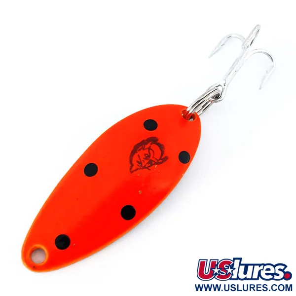 Il nichel lucidato ricopre il retro di questo ondulante da 4 cm, fornendo un bagliore metallico brillante che completa la vivace faccia verniciata. Con il codice prodotto 10931, questo Devle Dog 5200 UV è rifinito in un rosso fluorescente ad alta visibilità con cinque distinti punti neri che circondano il classico marchio a testa di diavolo Eppinger. Con un peso di 7 g, il corpo in metallo è progettato per lanci bilanciati e massima durata. La finitura dell'esca è reattiva ai raggi UV, virando verso un'intensità rosso-arancio profonda e luminosa sotto la luce ultravioletta per favorire la visibilità in acque torbide o in condizioni di scarsa illuminazione. Un'ancoretta affilata color argento è fissata da un robusto anello spaccato all'estremità posteriore, mentre la punta presenta un occhiello pulito per l'attacco della lenza. Questo specifico esemplare è in condizioni pari al nuovo, esattamente come quando ha lasciato la fabbrica del Michigan.