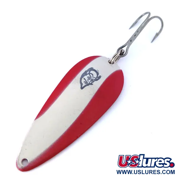 Con un peso di 11 g (2/5 oz), il Dardevle Imp rappresenta uno dei design più riconoscibili nella storia della pesca. La superficie anteriore è rifinita con il tradizionale smalto a strisce rosse e bianche, con l'iconico logo della testa di diavolo nera centrato sulla striscia bianca. Con una lunghezza di 5,5 cm (2 1/4"), il corpo metallico presenta sul retro nichelato la punzonatura "DARDEVLE IMP EPPINGER DETROIT MI", a testimonianza della storia produttiva dell'azienda nel Michigan. Il codice prodotto 10452 si riferisce a questa specifica configurazione, che si presenta in condizioni eccellenti 5/5. Un robusto amo triplo è fissato alla parte posteriore tramite un classico anello spaccato, pronto per il lancio o la traina. La forma oblunga e profondamente curva dell'ondulante è progettata per fornire un'azione oscillante distinta durante il recupero.