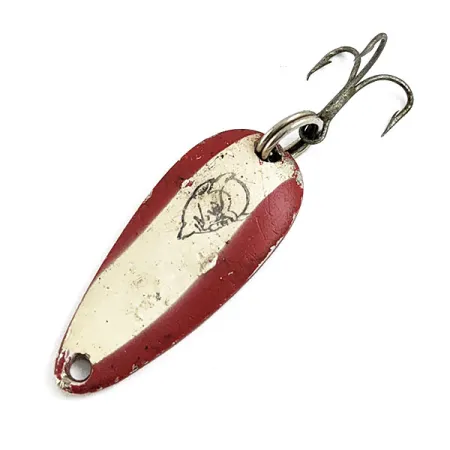 Con un peso di 6 g (3/16 oz), la classica striscia Red Devil su questo cucchiaino da lancio risalta su una base in nichel. Lungo 3,5 cm (1 1/2"), il Dardevle Midget è un pilastro dell'attrezzatura leggera prodotto da Eppinger, azienda fondata da Lou Eppinger a Detroit nel lontano 1906. Un piccolo logo a forma di pesce è stampato sulla striscia bianca centrale, mentre il retro del corpo metallico riporta chiaramente la dicitura "DARDEVLE MIDGET U.S.A.", a conferma della sua origine a Dearborn, Michigan. Identificato dal codice prodotto 17035, questo esemplare mostra segni di normale usura sulla vernice e segni superficiali coerenti con una valutazione di stato 4/5. La forma concava della paletta è abbinata a un lato inferiore in nichel argentato, una combinazione da sempre tra le preferite per la pesca in acque limpide. Un robusto amo triplo è fissato tramite un anellino spaccato alla base, mentre l'occhiello anteriore è pronto per la legatura diretta o l'uso di un moschettone.