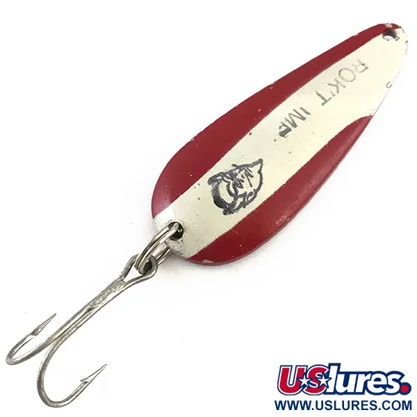 Il peso di 21g (3/4oz) di questa ondulante fornisce la massa necessaria per lanci lunghi e precisi. Punzonato direttamente sul retro in nickel, il marchio 'BASS ROK'T-DEVLE DETROIT U.S.A.' ne identifica l'origine dai leggendari laboratori Eppinger nel Michigan. Il lato anteriore mostra l'iconica finitura a strisce rosse e bianche, centrata dal riconoscibile logo con la testa di diavolo nera e la dicitura 'ROK'T IMP'. Con una lunghezza di 5,5cm (2 1/4"), questa esca è un esempio per eccellenza di attrezzatura di medie dimensioni. La componentistica include un'ancoretta originale collegata da un robusto anello spaccato, che riflette gli elevati standard di qualità mantenuti da Eppinger per il codice 4259. Classificata con una valutazione di 4/5, l'esca è molto ben conservata, con superfici pulite e una punzonatura chiara e leggibile sul retro in nickel.