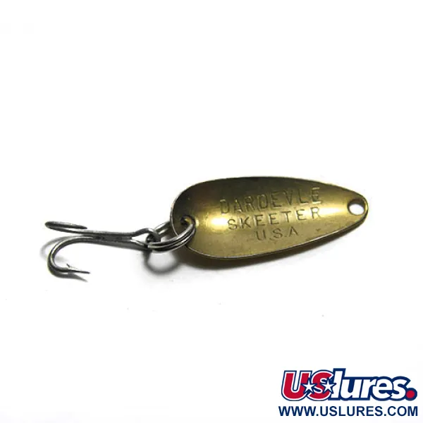 Rombi gialli e rossi decorano la superficie di questo Dardevle Skeeter Eppinger, una versione in miniatura di uno dei motivi più riconoscibili nella storia della pesca. Con un peso di soli 1/32 oz (1 g) e una lunghezza di 1" (2,3 cm), è uno strumento da finesse progettato per attrezzature leggere e presentazioni discrete. Identificato dal codice prodotto 0190, questo esemplare è in condizioni 4/5, mostrando segni di un uso delicato pur mantenendo la sua vivace finitura. L'hardware consiste in un robusto amo triplo fissato al corpo metallico concavo, una forma ottenuta attraverso gli stessi stampi proprietari utilizzati dal produttore a Dearborn, Michigan. Questo specifico ondulante riflette l'artigianato americano di alta qualità che ha definito il marchio Eppinger fin dai suoi primi giorni a Detroit. L'occhiello è forato in modo netto per una facile montatura e il marchio metallico rimane nitido sul lato inferiore del cucchiaino.