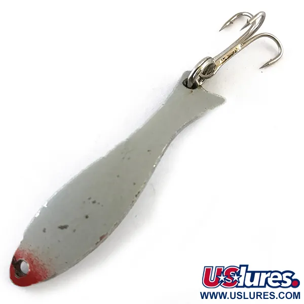 Inciso chiaramente sul retro nichelato, il nome "DERVISH" identifica questo ondulante come un classico fuori produzione della Acme Tackle Company. Con un peso di 1/4 oz (7 g) e una lunghezza di 2" (5 cm), questo cucchiaino da lancio di fabbricazione americana è un preferito compatto per presentazioni in acque medie. La faccia anteriore mostra una verniciatura bicolore bianca rifinita con un punto d'attacco rosso sulla punta. Classificato 4/5, l'esemplare mostra una leggera e autentica usura sulla superficie verniciata mentre il retro in metallo rimane lucido e riflettente. La componentistica consiste in un robusto anellino spaccato sulla coda svasata, che assicura un amo triplo affilato pronto per l'azione. Il codice prodotto 5413 lo contrassegna come un modello storico dell'epoca in cui Acme stava perfezionando la sua linea di esche metalliche negli USA. La leggera curvatura del corpo è progettata per l'efficacia durante un recupero costante sia in acque ferme che correnti.