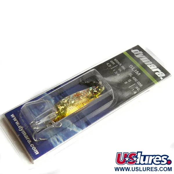 Con un peso di 8g (1/4oz), questo ondulante Dymara presenta una vivace finitura Trota iridea che cattura la luce sulla sua superficie martellata. Realizzato in Canada da Dymara Industries, questo esemplare, catalogato con il codice prodotto 0838, misura 4,5cm (1 3/4"). La confezione lo identifica come il modello "Slim", nello specifico il numero di stock SL 400 008. L'esca è conservata nel suo blister originale, con una valutazione di stato 6, che indica che è inutilizzata e preservata esattamente come quando è uscita dallo stabilimento di Campbell River, B.C. Progettata per essere versatile, il retro della scheda ne indica l'idoneità per lo spinning, la traina e il jigging, avvertendo che l'artificiale non deve essere piegato. La componentistica include un'ancoretta affilata e un robusto anello spaccato, tipici della costruzione affidabile di questo produttore ormai fuori produzione. Il pattern Trota iridea è applicato meticolosamente con un mix di scaglie dorate e argentate glitterate, accentuate da una sottile linea laterale rosa e puntini scuri.