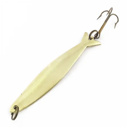 L'ottone pieno conferisce a questo cucchiaino da 7 cm (2 3/4") un riflesso naturale che rimane efficace in varie condizioni di luce. Con un peso esatto di 6 g (3/16 oz), il profilo sottile permette lanci precisi in punti angusti o lungo i bordi dei canneti. Eagle Tool Inc. ha prodotto questo modello con una distinta punzonatura a coda di pesce, identificata dal codice 24582. Mai usato in pesca, il metallo rimane in condizioni pari al nuovo con un punteggio di 6, mostrando l'originale lucentezza di fabbrica. Il corpo punzonato è sagomato per garantire stabilità durante i recuperi costanti o le presentazioni verticali. Il colore ottone naturale fornisce un riflesso smorzato che spesso si rivela più efficace delle finiture brillanti in acque limpide. Un unico amo treppiede è posizionato nella parte posteriore del corpo affusolato per bilanciare la distribuzione del peso.