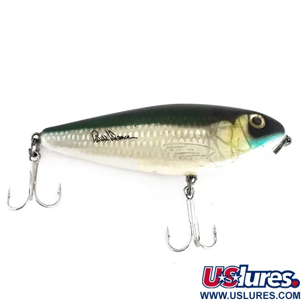 La firma autografa di "Bill Dance" corre lungo il fianco a scaglie argentate di questo classico Heddon, segnando il suo posto nella serie Excalibur. Lungo 7 cm (2 3/4") e con un peso di 10 g (1/3 oz), l'esca presenta un profilo realistico di pesce esca con dorso verde scuro e una trama a rete argentata sui fianchi. Un delicato accento blu sotto la gola completa gli occhi dorati e il ventre color crema. Progettato come esca di superficie rattling, è in grado di raggiungere profondità di 0,5 m (1,6 ft) durante il recupero. Questo particolare esemplare, con codice prodotto 8055, è in condizioni eccellenti 5/5. Prodotto negli USA, il corpo è armato con due affilate ancorette per garantire allamate efficaci. Le camere sonore interne forniscono una presenza acustica specifica mentre l'esca viene lavorata sulla superficie dell'acqua.