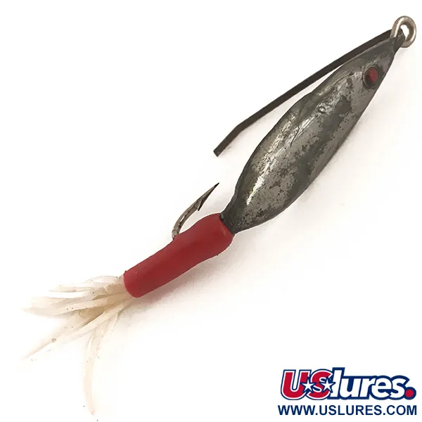 Con un peso di 1/4oz (8g), il corpo pesante in piombo di questo Hawaiian #3 è progettato specificamente per penetrare attraverso la vegetazione più fitta. Questo esemplare, identificato dal codice prodotto 4743, presenta l'originale guardia antialga in filo metallico che parte dall'occhiello e si inarca verso la punta dell'amo per prevenire incagli negli ostacoli più densi. Un tubicino rosso vibrante copre il gambo dell'amo, creando un netto contrasto con il corpo argentato e terminando in un ciuffo di filamenti bianchi in gomma. Lungo 1 3/4" (4,5 cm), l'artificiale conserva l'occhio originale dipinto di rosso vicino alla punta e il marchio stampato sul retro. La finitura metallica mostra alcuni leggeri segni di invecchiamento, che gli valgono una solida valutazione di 4/5, pur mantenendo intatto il suo fascino funzionale classico. Prodotto negli USA, il design riflette l'impegno di Fred Arbogast nel costruire esche specializzate per insidiare i predatori tra ninfee e rami sommersi.