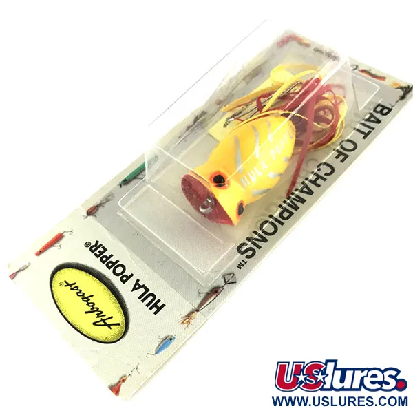 Archivio museo: Fred Arbogast Hula Popper Esca Topwater, Giallo, 8g, Skirt Gomma, #9472