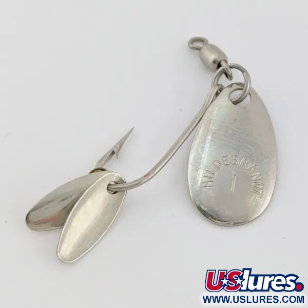 La nichelatura copre ogni superficie di questo cucchiaino compatto da 1/32 oz (1 g). Punzonata con l'identificativo "HILDEBRANDT 1", la paletta principale a goccia è abbinata a due palette più piccole posizionate vicino alla punta dell'amo per massimizzare i riflessi. Questo modello Hildebrandt Spinners 24526 misura solo 3/4" (2 cm) di lunghezza, costruito attorno a un amo singolo integrato con una girella barrel in testa. Ogni componente metallico mantiene una finitura ad alta lucentezza, ottenendo una valutazione di condizione 5/5 per la sua brillantezza e l'assenza di usura superficiale. L'assemblaggio utilizza un montaggio diretto sul gambo per la paletta flicker, un design focalizzato sul lancio ultraleggero o tecniche di drifting.