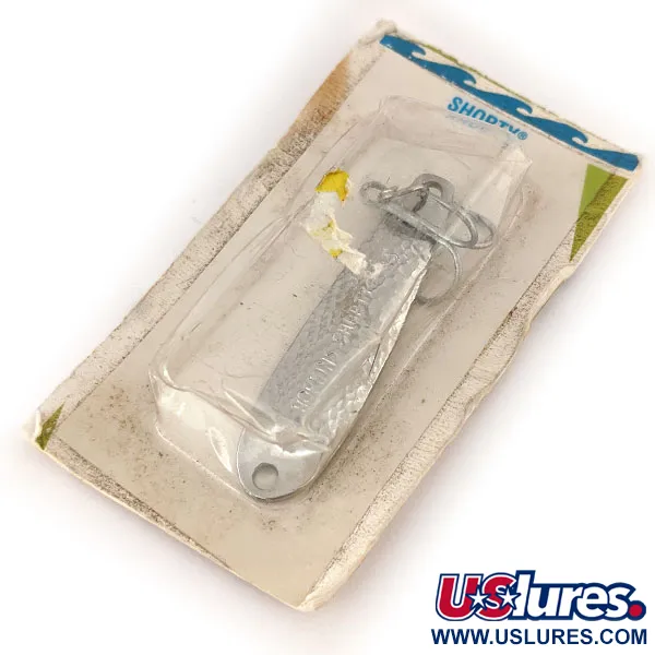 Una finitura in nichel martellato conferisce una superficie strutturata e riflettente a questo artificiale in metallo pieno da 14g (1/2oz). Prodotto dalla Hopkins Fishing Lures Co. di Norfolk, Virginia, questo Shorty 45 (codice prodotto 11240) rimane uno strumento essenziale per i pesci predatori sia d'acqua dolce che salata. Il corpo si estende per 5,5 cm (2 1/4") e presenta la dicitura "Shorty" stampata direttamente nel metallo, assicurando che l'identità del marchio resista a anni di utilizzo. Questo esemplare è inutilizzato e sigillato nella sua confezione originale, che mostra i segni del tempo con scurimenti e usura del cartoncino, mentre l'esca mantiene la sua lucentezza di fabbrica. La componentistica standard include un robusto anello spaccato e un'ancoretta, destinati ad applicazioni come il jigging verticale o il lancio a lunga distanza. Istruzioni dettagliate per la traina e il jigging a varie profondità sono stampate sul retro, evidenziando la versatilità di questo classico americano.